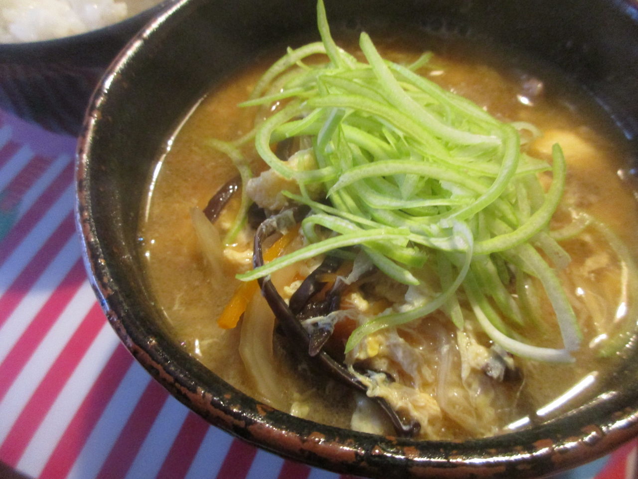 生姜やネギもたっぷりで体にもいいし、酸味のあるスープってなんか新鮮。
